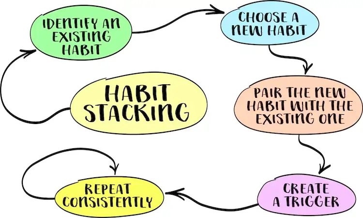 Habit stacking is simple: you stop trying to “find time” for a new habit, and you connect it to a habit that already exists. Your current habit becomes the anchor, and the new behavior becomes the add-on.