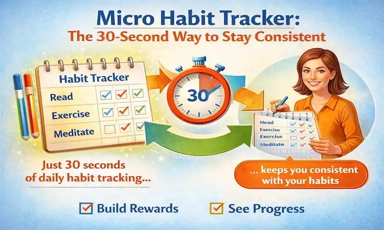 In one sentence: a micro habit tracker is a simple way to mark “I did the smallest version today.” The payoff is big, you keep showing up without pressure, even on rough days. The whole system takes about 30 seconds a day, needs no app, and works whether you track one habit or a few.