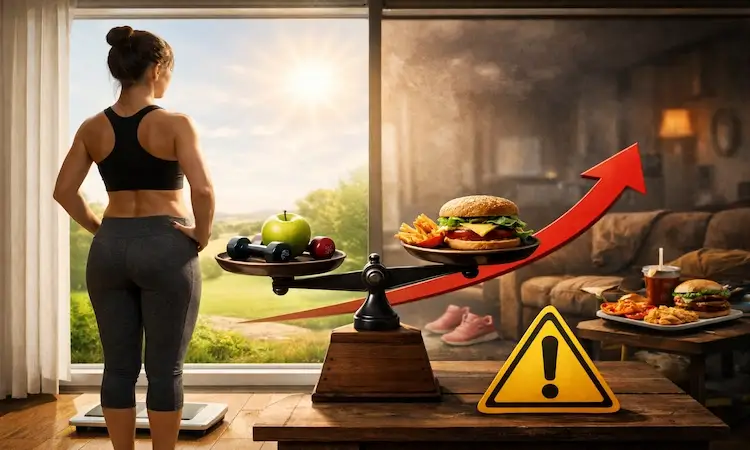 Eventually there’s a break: a weekend, a holiday, a stressful week, a “I deserve this” moment. You eat more than planned. The scale jumps (mostly water at first), and the brain reacts with shame. Then comes all-or-nothing thinking: “I blew it, so I may as well keep going.”